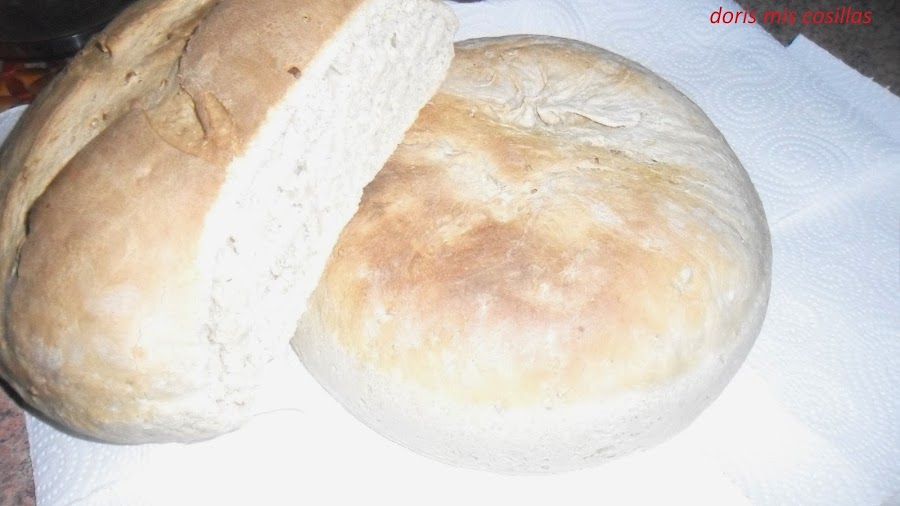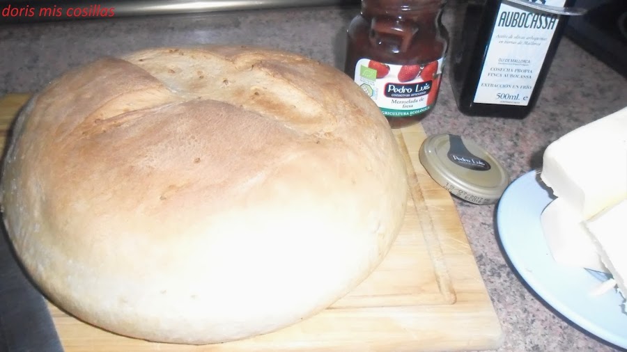 Yo he puesto un recipiente con agua caliente en el fondo del horno, para que la corteza quede mas crujiente. Bajar a media cocción a 190º y dejarlo hasta verlo doradito unos 20 minuto. Al desmoldar, colpear la parte trasera y ver que suene hueco.