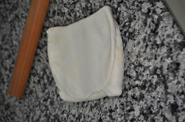 5.- Doblar la masa en tres partes y y dejar el pliegue hacia arriba
