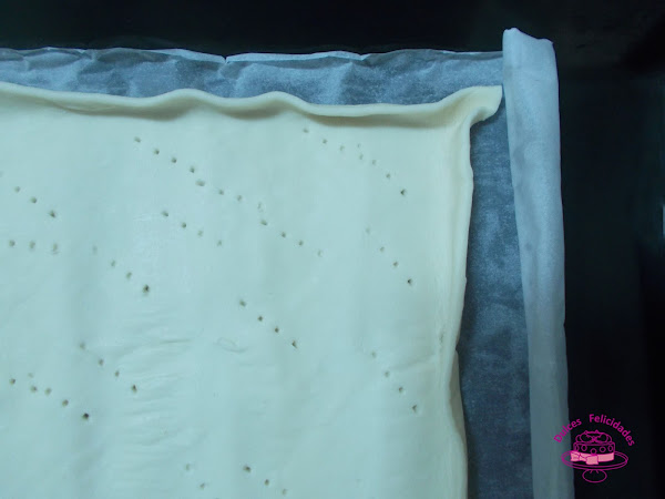 2. Pinchamos con un tenedor toda la superficie excepto los bordes (aproximadamente dejamos 1 dedo de grosor de borde sin pinchar, que levantaremos a modo de solapa).