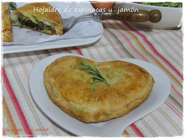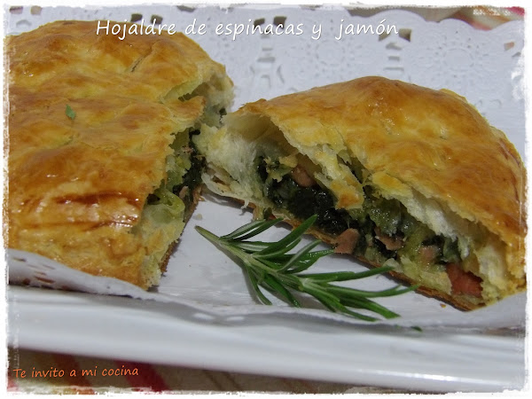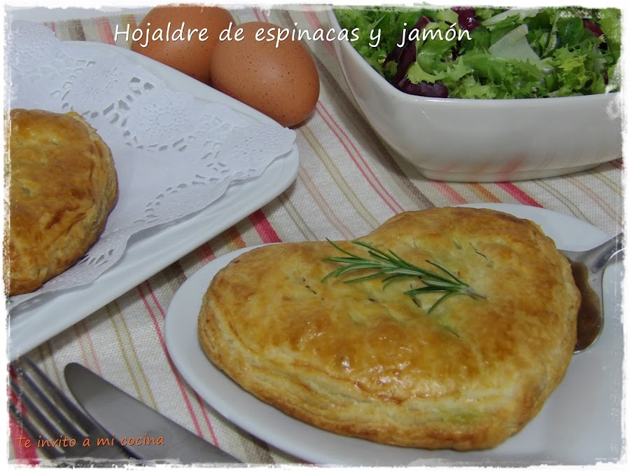 Y vamos a utilizar: una lámina de hojaldre, una bolsa de espinacas congeladas,100 ml de nata (crema de leche), 150 gr de jamón serrano, dos ajos, un chorrito de aceite y un huevo para pincelar.