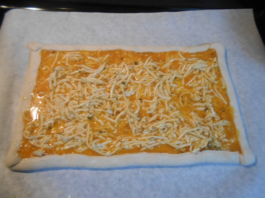 Vertemos el huevo con el queso rallado en el hojaldre.