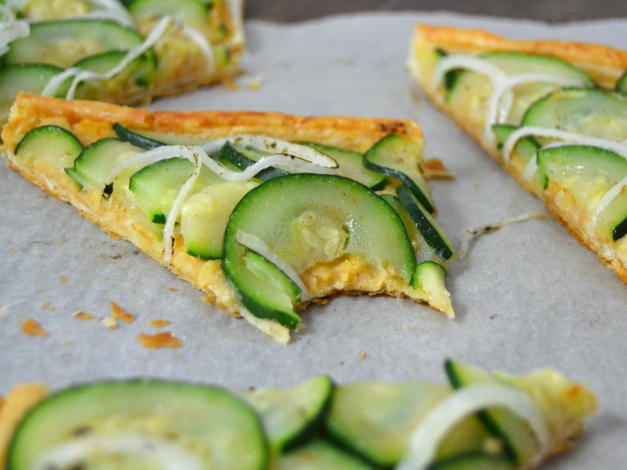 Yo siempre tengo en el congelador alguna lamina congelada y en esta ocasión me ha venido genial para preparar esta coca de calabacín. En un principio quería hacerla solo con verduras, pero me pareció que podía quedar más original si le añadía algo de base. Al final me decidí por un puré de garbanzos ya que no aporta apenas humedad al hojaldre y ademas le da un contraste genial tanto en sabor como en textura. ¿Os apetece prepararla en casa? ¡Pues vamos con la receta!