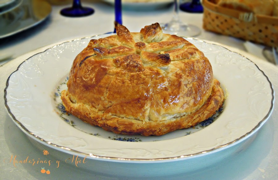 Pues eso es lo que me pasó a mí con este hojaldre el día de San Esteban; tenía a mis hermanos, hijos, marido, cuñadas, yerno....a todos sentados a la mesa esperando a que yo me sentara y llevara el hojaldre que habían visto en el horno; pero antes de nada tenía que hacer las fotos para el blog, y claro, como lo hago todo rápido y con nervios......