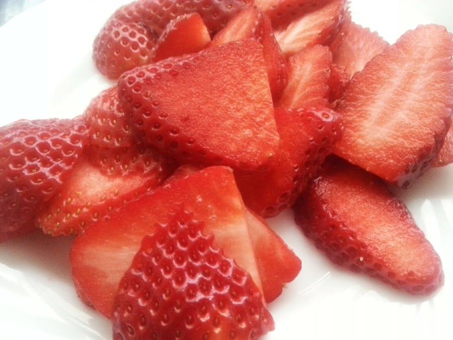 5. - Cortamos las fresas o fresones en rodajas y los hojaldres los abrimos por la mitad.
