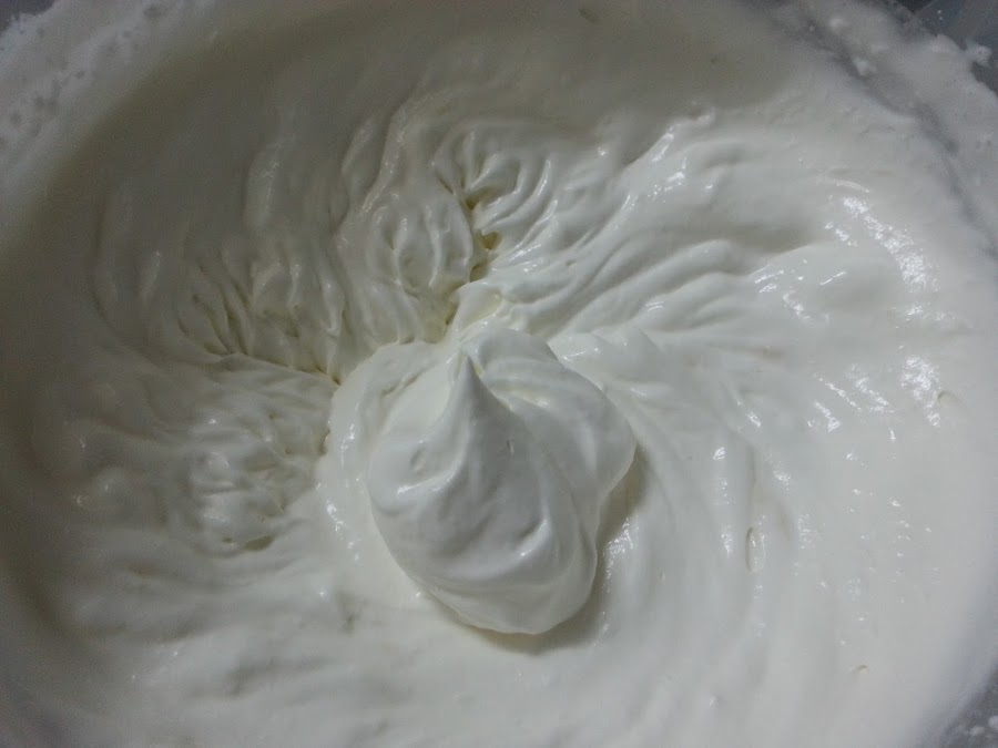4. - Mientras montamos la nata (crema de leche), nada de utilizar nata (crema de leche) en spray, que se bajan y además no queda tan buena, utilizad la nata (crema de leche) de montar bien fría y la montáis batiendo hasta que quede firme, añadiéndole la cantidad de azúcar al gusto.