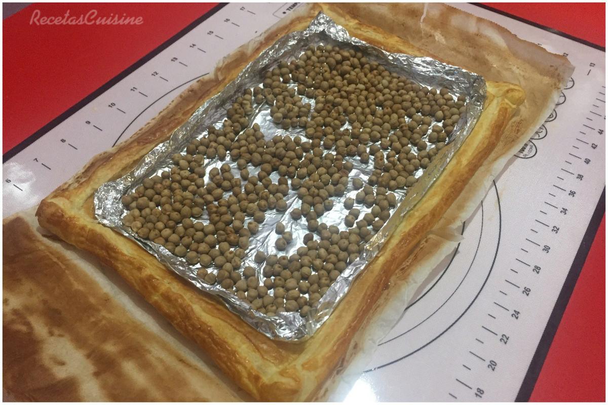 4. Sacamos del horno y retiramos el papel de plata con los garbanzos. Dejamos que el hojaldre se enfríe completamente.