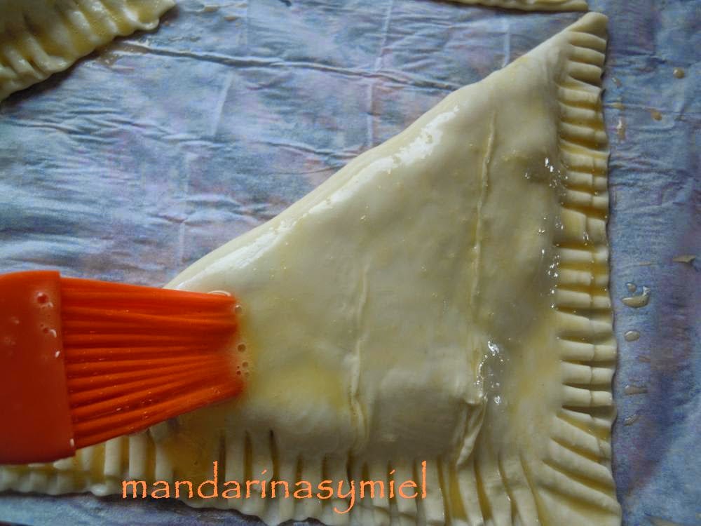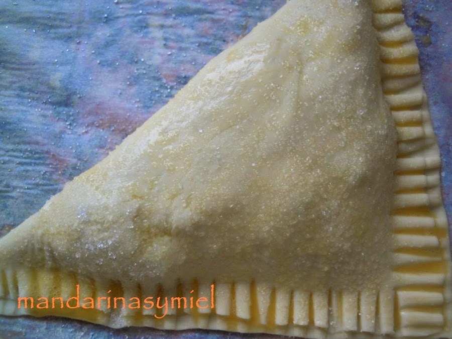 Pinta cada triángulo con huevo batido y espolvorea con azúcar.