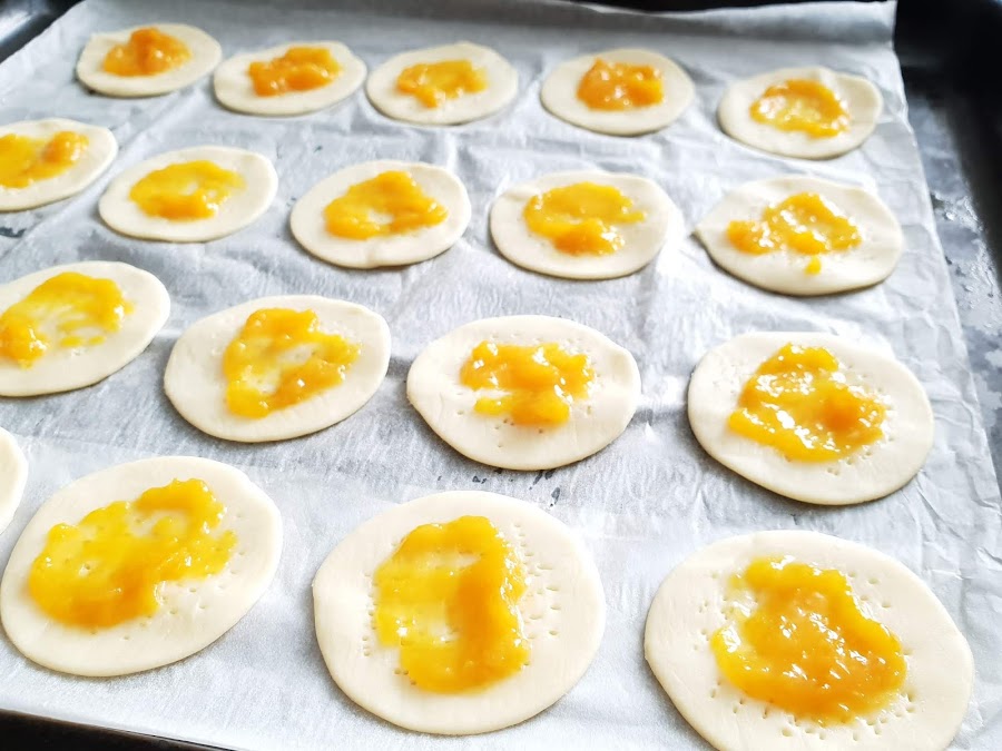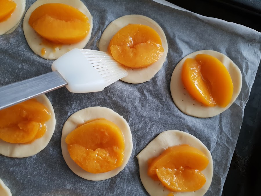 5. - Pincelamos con mermelada de melocotón, dejando los bordes sin pintar.