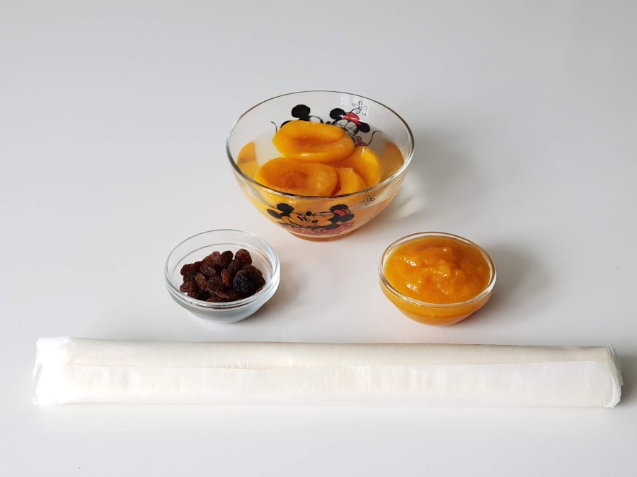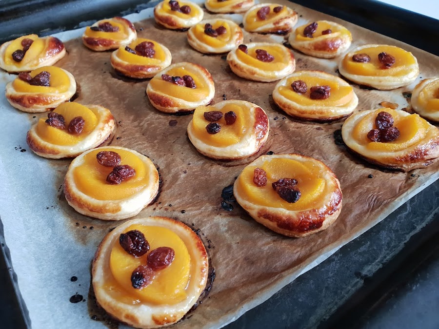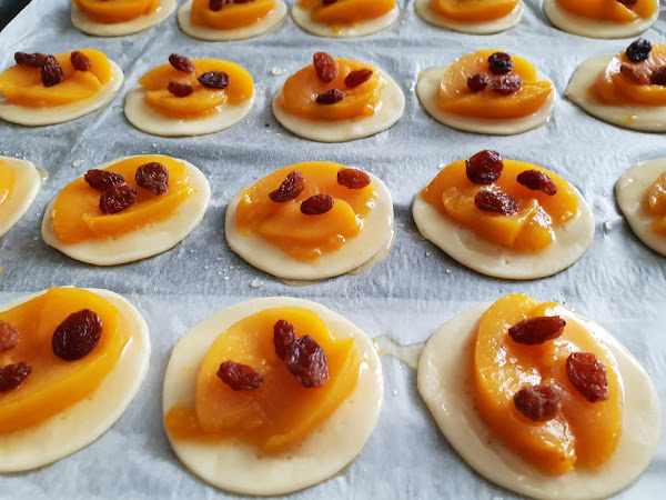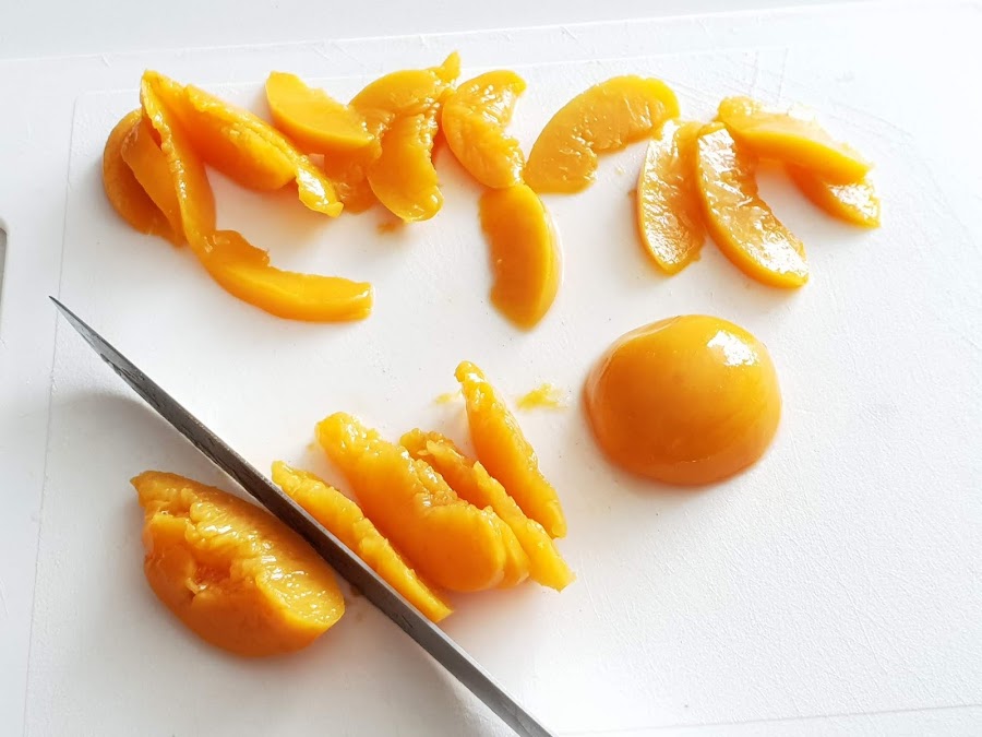 La verdad es que me apetecía hacer una receta dulce, así que miré a ver que tenía en la despensa y me encontré una lata pequeña de melocotón en almíbar.