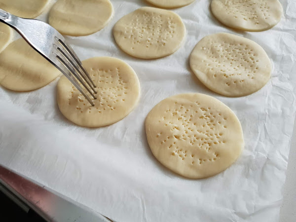 4. - Pinchamos muy bien por el centro, dejando los bordes sin pinchar para que luego suban.