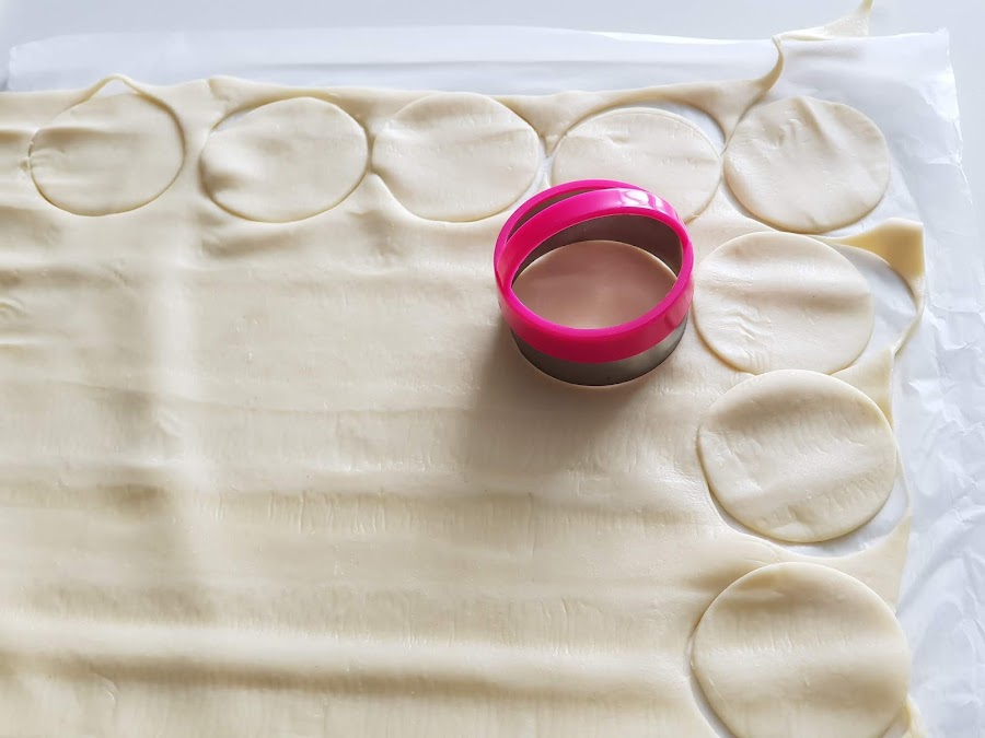 Yo los he hecho con un cortador muy pequeño, ya que quería hacer una prueba para una fiesta, y la verdad es que este tamaño es perfecto, son dos bocaditos cómodos de coger con las manos y comer.