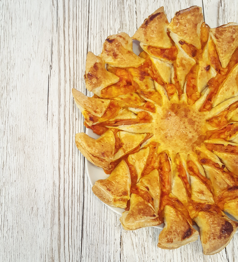 Además, es una receta que podéis hacer con los peques de la casa, si los tenéis. Les va a encantar echar los ingredientes por el hojaldre, dar vueltecitas a los diferentes “pétalos” y ver lo chulo que queda luego.