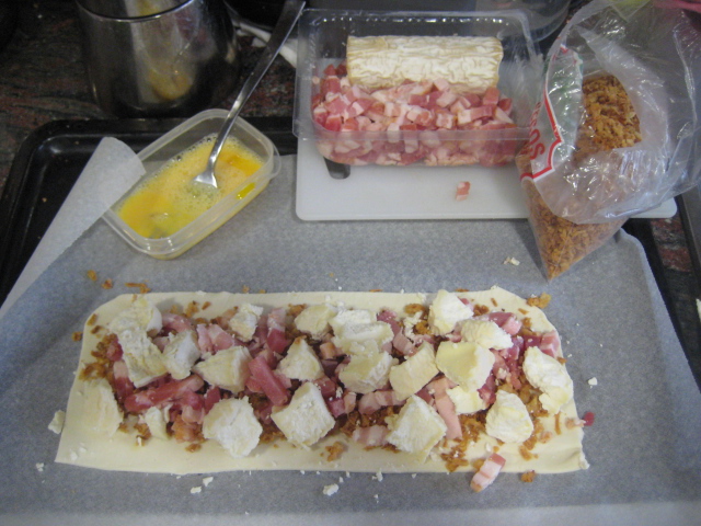 HOJALDRE DE QUESO, CEBOLLA Y BACON