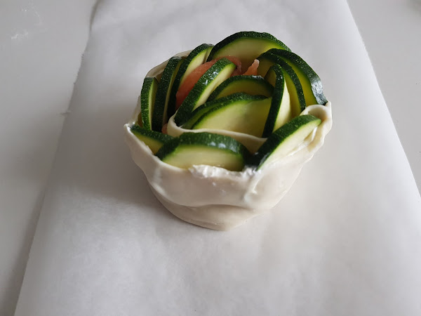 Si bien es cierto que el primer intento me salió un churro, porque dejé demasiado al descubierto el calabacín y se deformó entero.