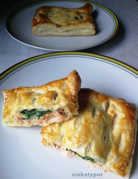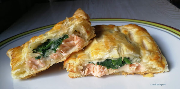 Un plato recurrente de pescado en mi casa es el hojaldre con salmón, queda muy jugoso y es una forma diferente de tomar pescado sobretodo para los niños, que con la espinaca les gusta mucho y resulta un menú muy completo.