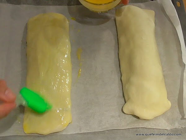 Una vez elaborados los hojaldres los pasamos a la bandeja de horno.