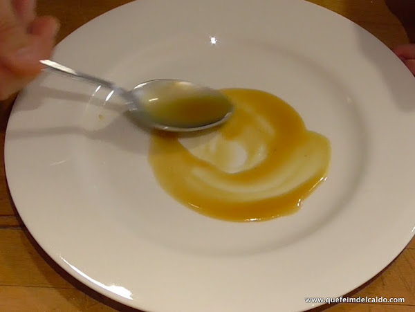 En el fondo de un plato llano ponemos una cucharada de salsa.