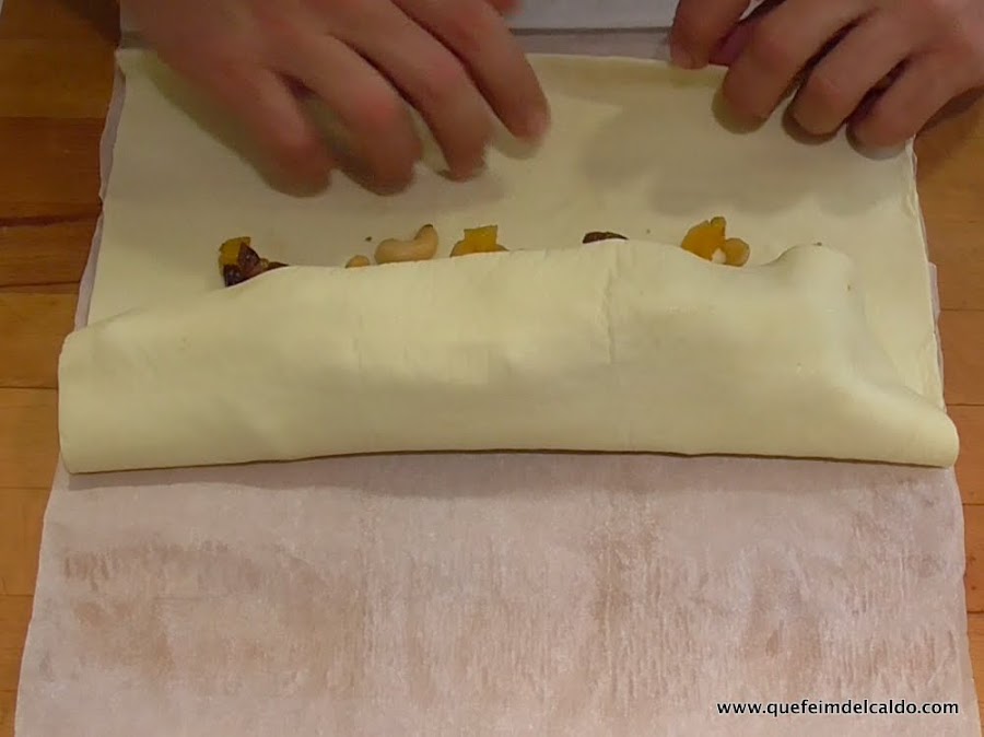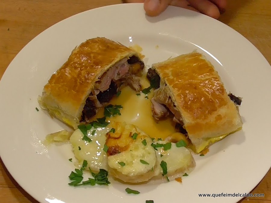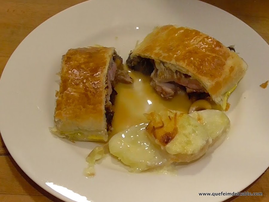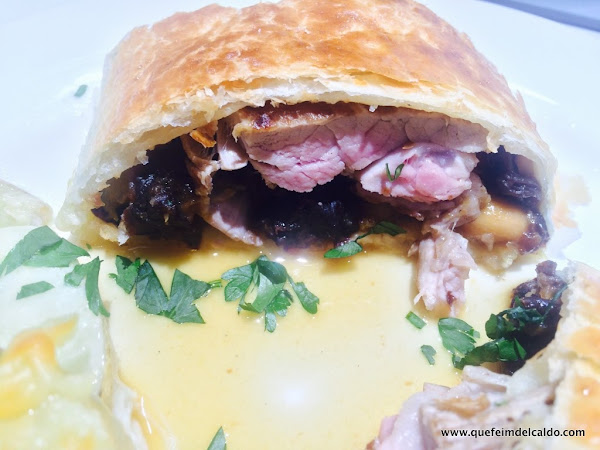 Sobre el hojaldre colocamos el solomillo de cerdo.