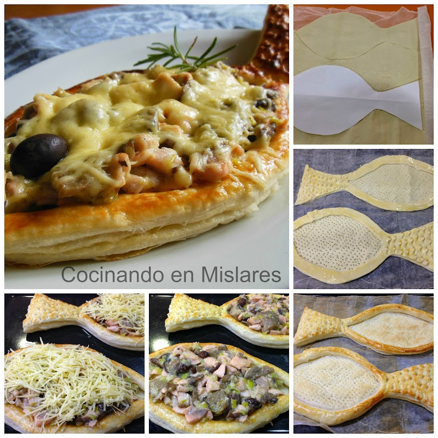 Ponemos la plantilla encima del hojaldre y cortamos 2 para cada pez.
