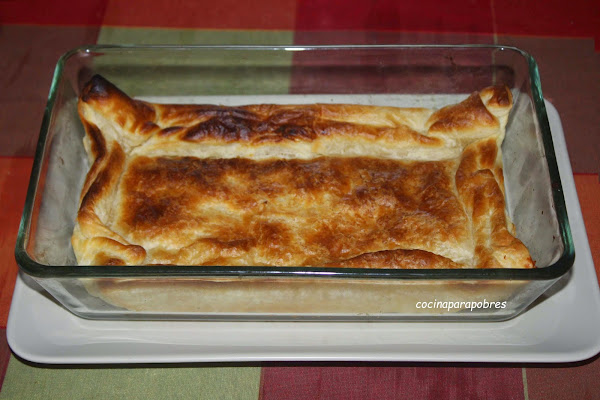 Colocamos otra lámina de hojaldre y apretamos los bordes para que quede sellado.