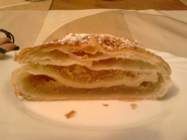 Este hojaldre fue elaborado por mi cuñada Pili, el cabello de ángel lo hicimos meses atrás las dos juntas, con las calabazas cogidas de nuestro huerto.