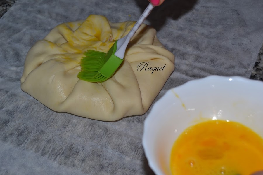 Batimos un huevo y pincelamos el hojaldre por encima.