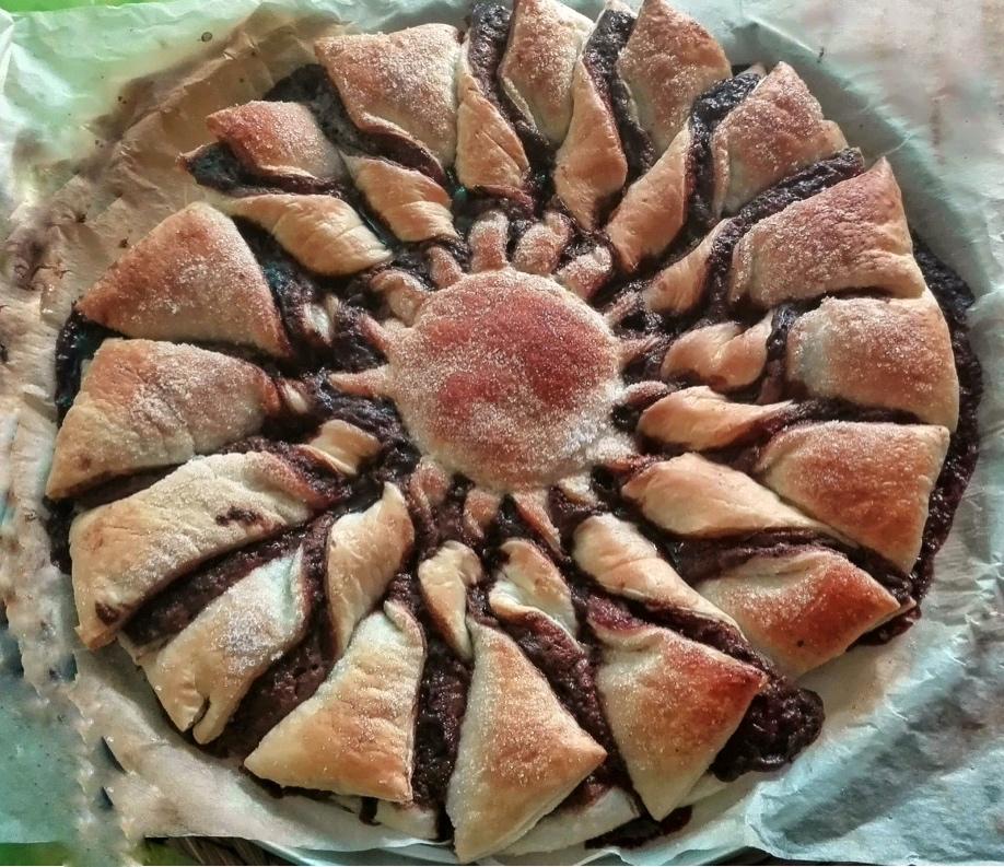 Sacamos y con un cuchillo afilado, cortamos sin llegar al centro del hojaldre, dejando un círculo de masa en el centro