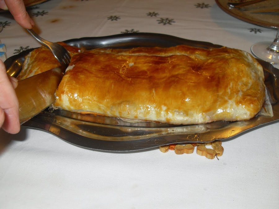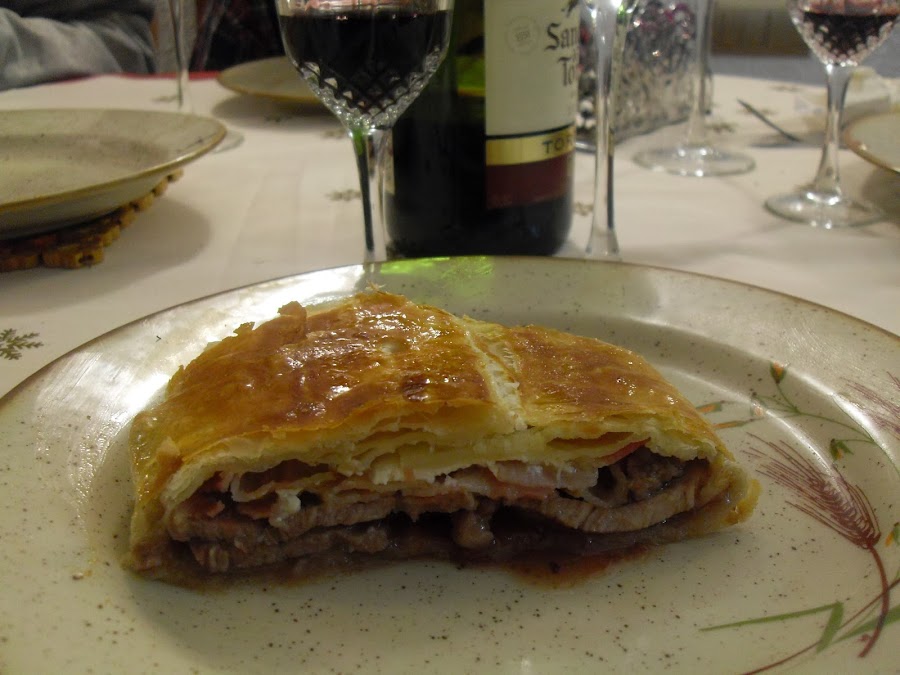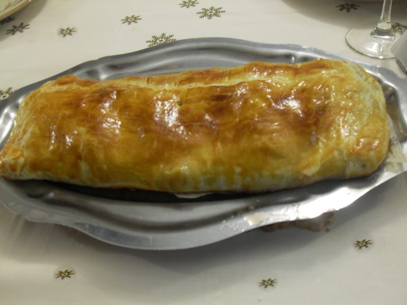 La idea y confección fue de mi cuñada Pili, que cuando se pone y tiene tiempo, hace deliciosas maravillas en la cocina dignas del más gourmet. Este hojaldre lo cenamos el día de Nochevieja y puedo asegurar que nos encantó y no quedo nada.