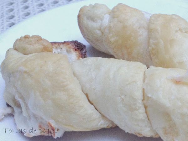 Con los trozos de hojaldre que me quedan (como sin forma) hago un pequeño envuelto así: