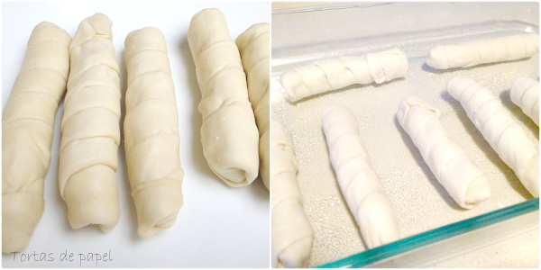 Hay que tener especial cuidado al momento de cerrarlos, para que con el calor el queso no se salga, así que yo lo que hago es humedecer un poco el hojaldre con mis dedos mojados de agua y presionar con cuidado para sellar bien (Aunque confieso, que no todas las veces me funciona, porque en algunos el queso insiste en salirse).
