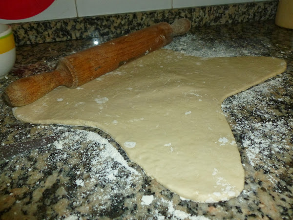 Estirarla con ayuda de un rodillo dejando la parte del centro con algo más de masa en los bordes. El grosor de la masa por los bordes que no sea inferior a un centímetro.