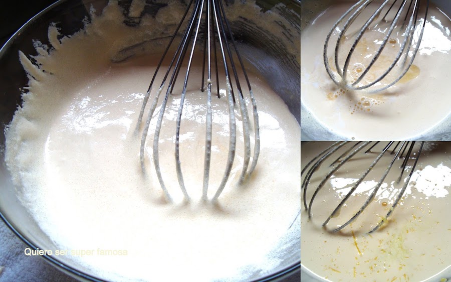 Batí las yemas con el azúcar y cuando empezaron a blanquear añadí el zumo de limón colado. Seguí batiendo hasta su total integración Al final introduje la ralladura de limón y mezclé bien de nuevo.