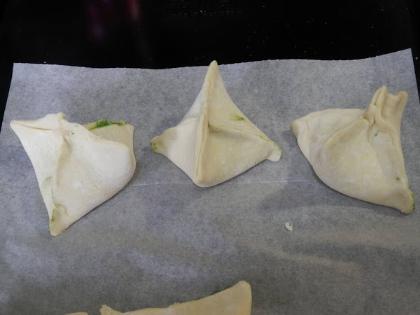 Pon un par de cucharadas del relleno en el centro de cada porción.