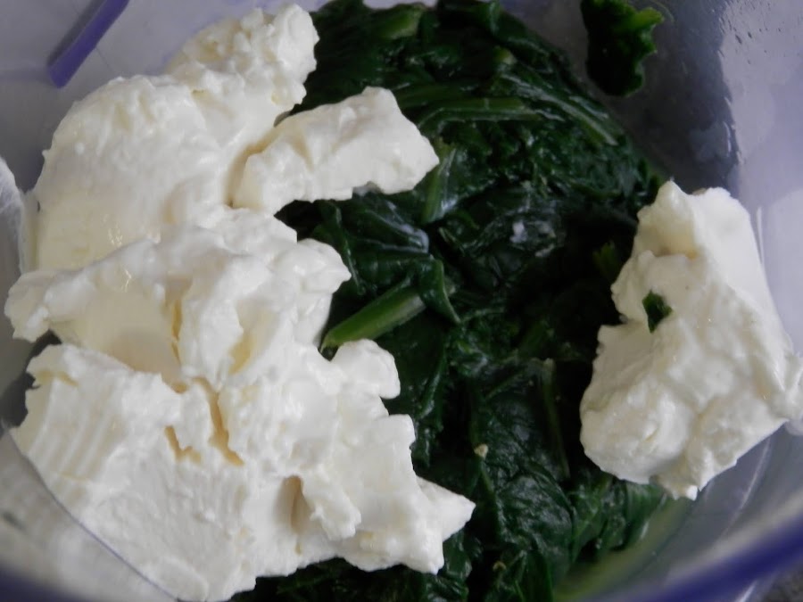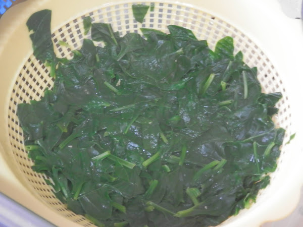 Escurre las espinacas muy bien con la ayuda de un colador y un cazo de repartir.