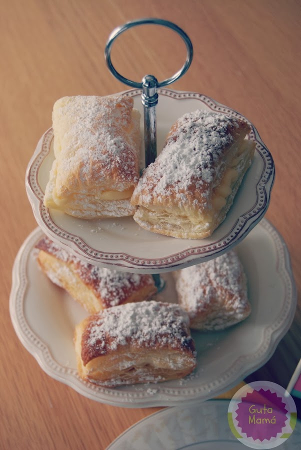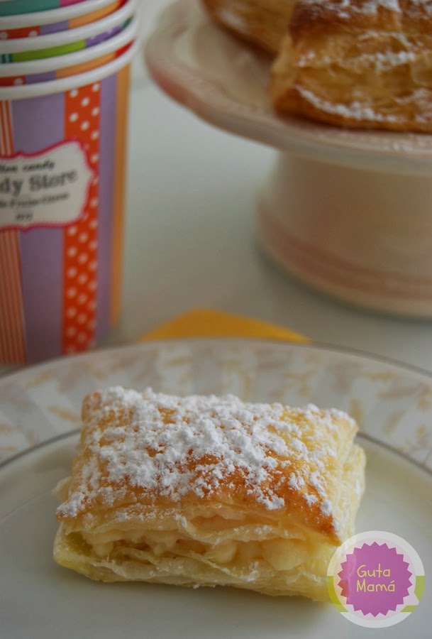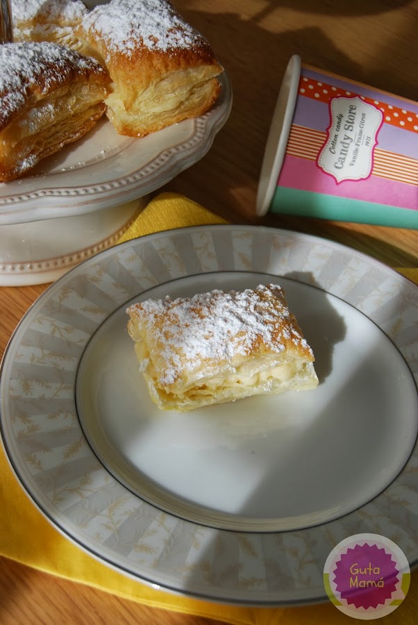 Esta receta surgió de una sugerencia del padre de mi Socia, amante de la crema pastelera, y la necesidad de usar un paquete de hojaldre que se iba a caducar pronto, por tanto, en esta ocasión, al ser una receta de improvisación, la insignia de Guta Mamá se queda en casa! Pero... para quién será la insignia del próximo post?