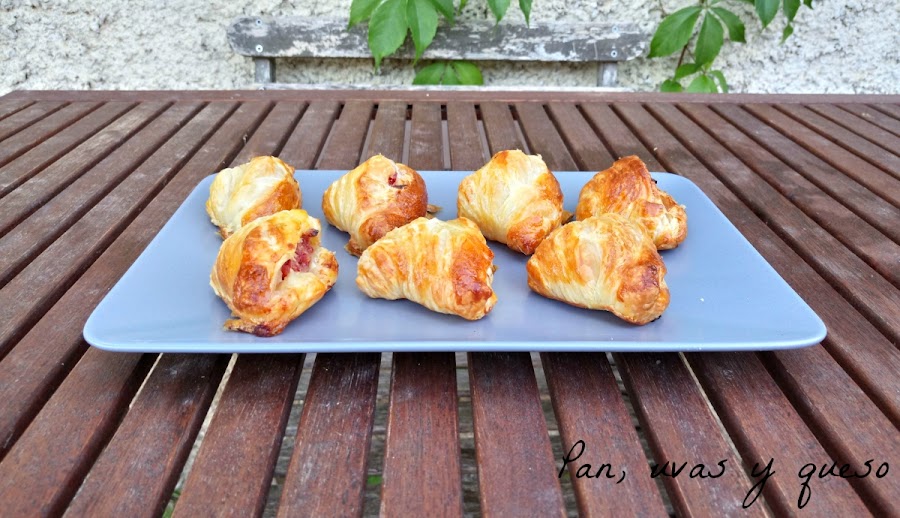 La idea para preparar estos hojaldres me la dio Marilú Entre Pucheros, aunque los de ella son dulces. Los míos van rellenos de longaniza, porque ya sabéis que yo soy más de salado.