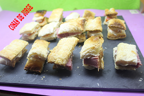 En esta ocasión os presento unos canapés variados muy fáciles de realizar, con una simple lámina de hojaldre congelado.