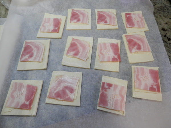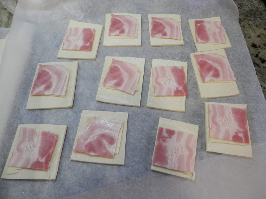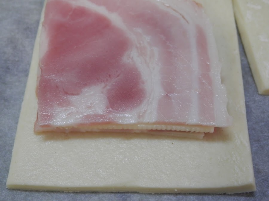 Ahora pon encima un filete de bacon, una de queso, otra de bacon y otra de queso.