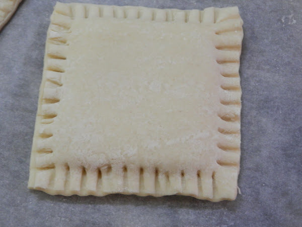 Pon encima el otro trozo de hojaldre y séllalo con la ayuda de un tenedor.