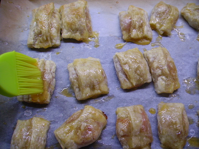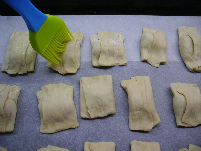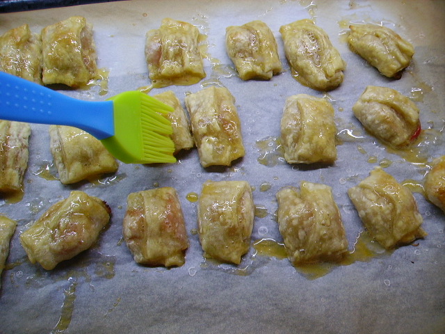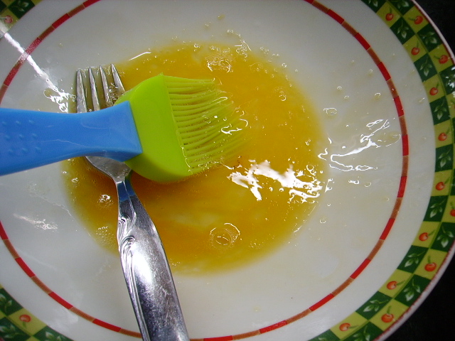 7.- Batimos huevo y cuando empiecen a subir, sacamos la bandeja del horno y pintamos con el batido de huevo.