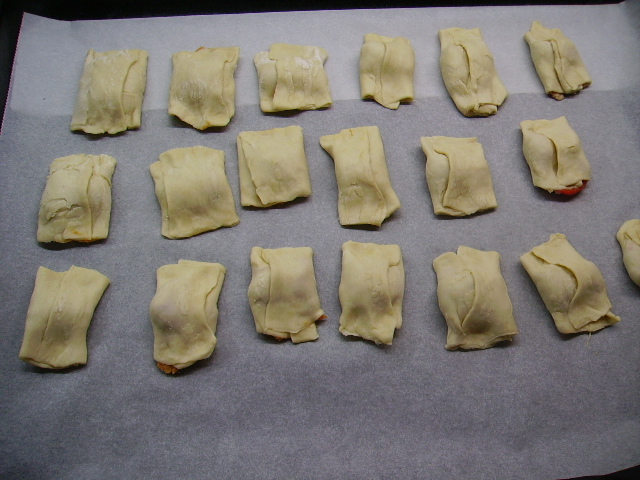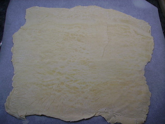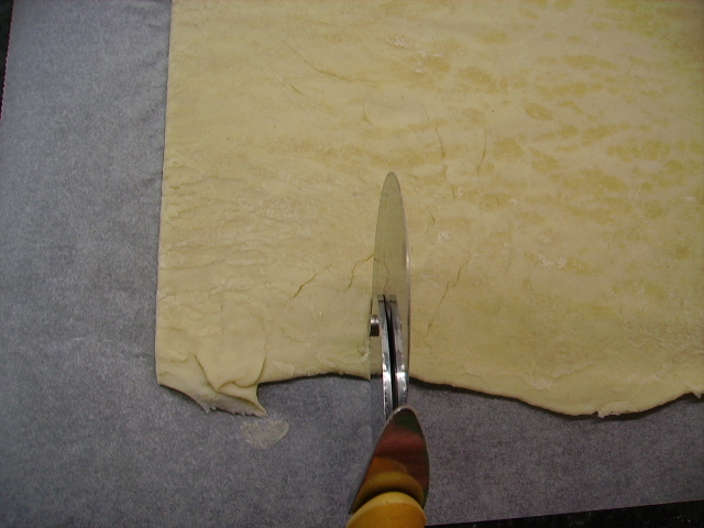 2.- Con ayuda de un cortapizza realizamos los cortes rectangulares del tamaño que deseemos los hojaldritos. (Ver foto)