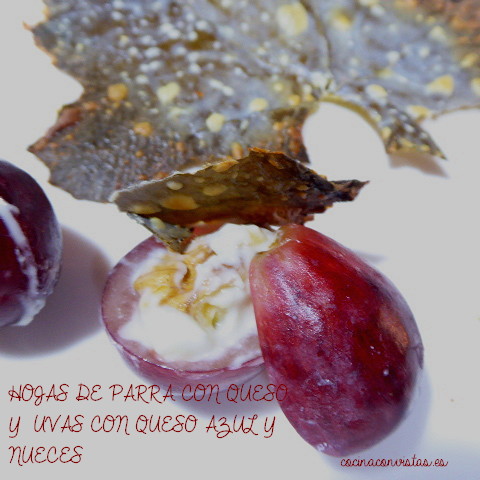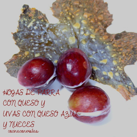 HOJAS DE PARRA CON QUESO Y UVAS CON QUESO AZUL Y NUECES.