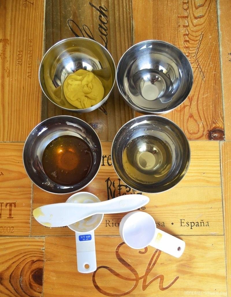 Como su nombre indica es mezclar miel y mostaza al gusto. Hay dos usos principales para esta salsa, ensaladas y para mojar, bien fingers de pollo, patatas, dados de carne... ¡lo que se te ocurra! En este caso yo he hecho la salsa para acompañar mezclando:1 unidad Mostaza normal1/4 unidad Mostaza de Dijon1 unidad de Miel de Flores¡Mezclar y listo! Si quieres usar esta salsa para una ensalada añáde ...