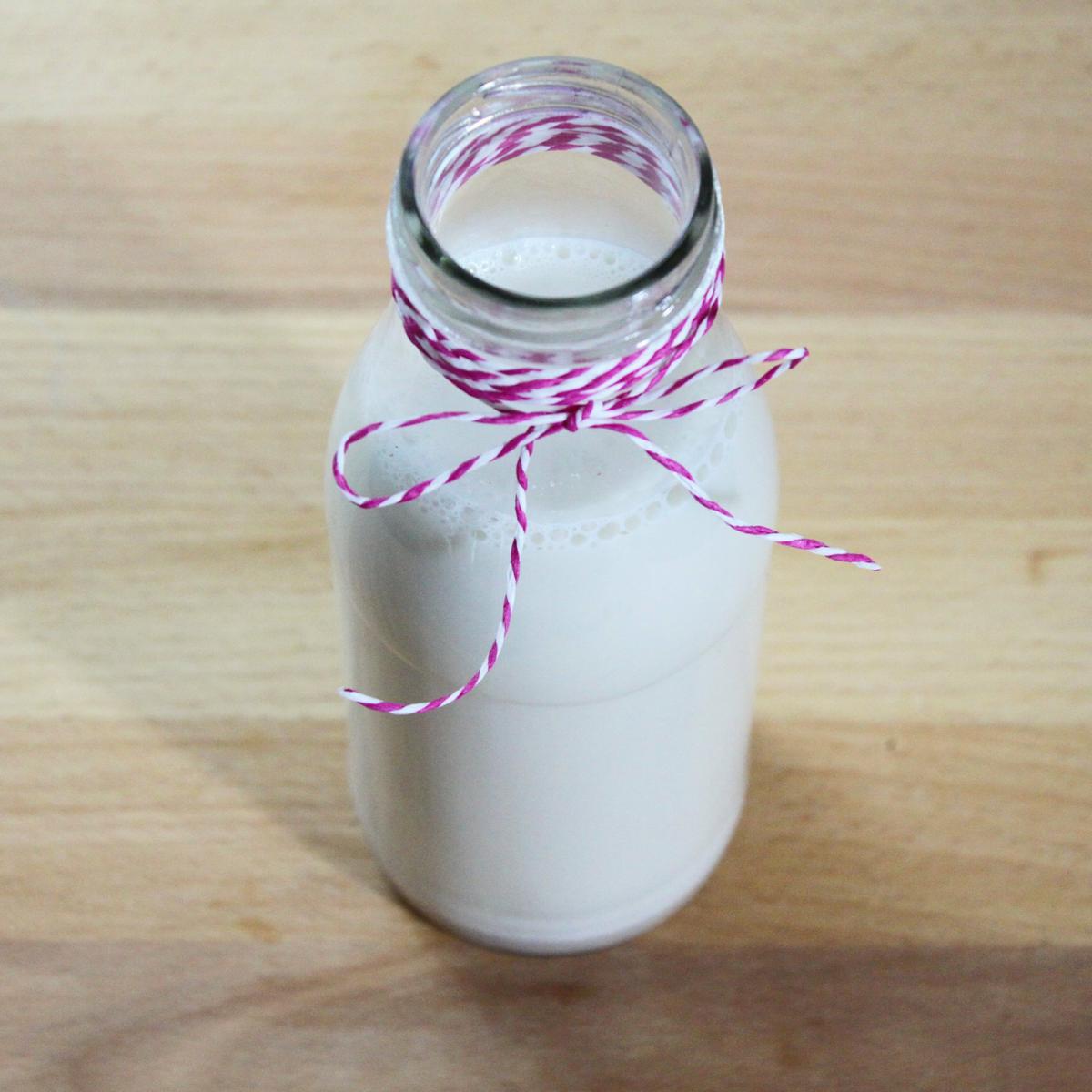 Pasar la mezcla por un colador o una bolsa de algodón especial para leches vegetales. Aprieta bien hasta que salga la ultima gota.