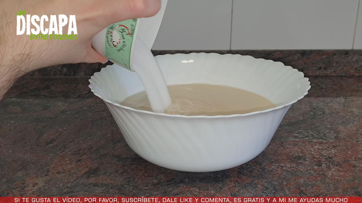 3A continuación añadimos unos 750 mililitros de agua fría. Removemos un poco.