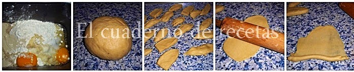 * Ponemos todos los ingredientes en un cuenco y empezamos a amasar. Cuando tengamos una masa que no podemos manejar cómodamente, la volcamos sobre la encimera y seguimos trabajando hasta tener una masa lisa y elástica. Al llevar bastante aceite, es una masa que se trabaja bien.
