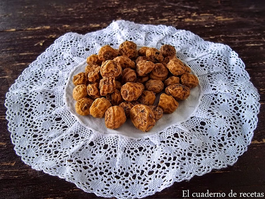 Pero hace unos meses descubrí por purita casualidad, una tienda donde venden las chufas secas. Y bueno, tanto entusiasmo me embargó, que tuve que contener mi brazo para no arrasar con todos los paquetes expuestos { el precio que tenían también me detuvo un poco, para qué vamos a engañarnos}