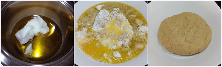 300 g jamón serranoEn un cazo, ponemos el aceite con la manteca y llevamos al fuego para que se derrita. Cuando esté listo, apartamos y reservamos. En un bol ponemos la harina con la sal, el azúcar, la levadura, el agua y el huevo semibatido. Vertemos el aceite con la manteca y amasamos hasta que quede todo bien integrado. Formamos una bola, tapamos con un paño y dejamos levar hasta que doble su volumen. Cuando la masa esté lista dividimos en 2 mitades y estiramos con la ayuda de un rodillo.
