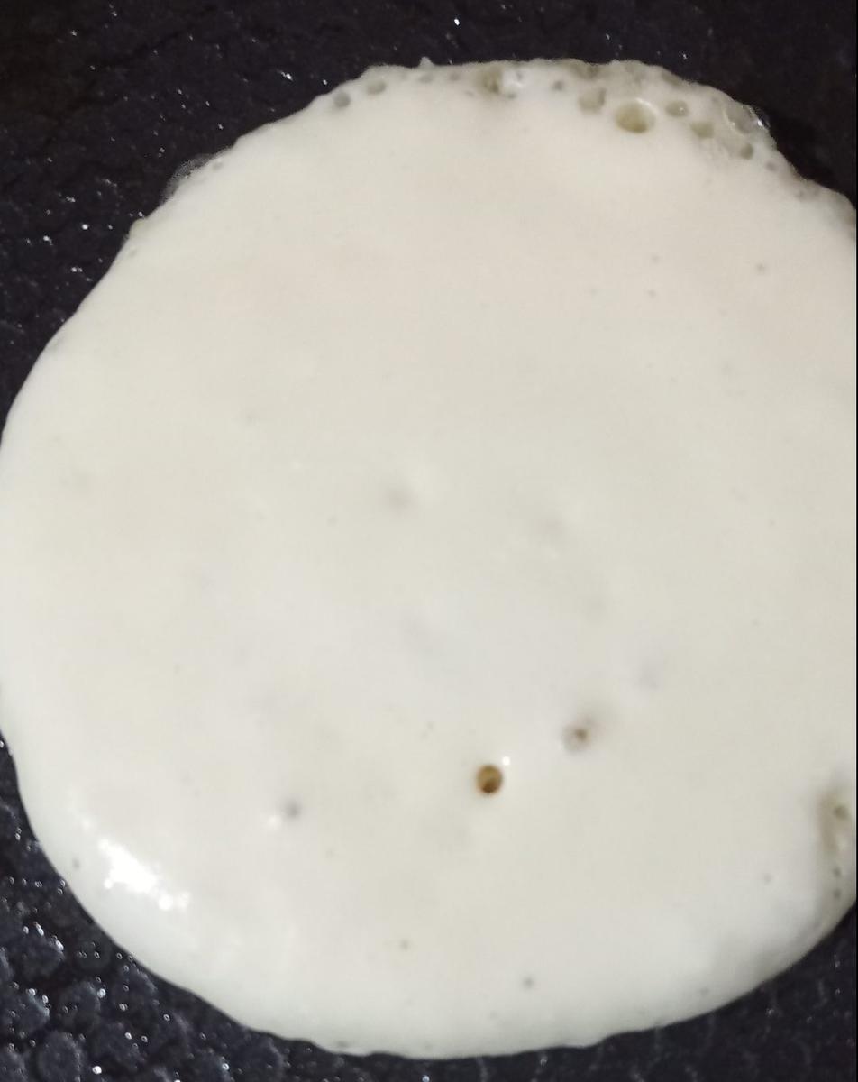Calentar la sartén elegida y pincelar con manteca, luego volcar con cuchara o cucharón pequeño una porción de la masa