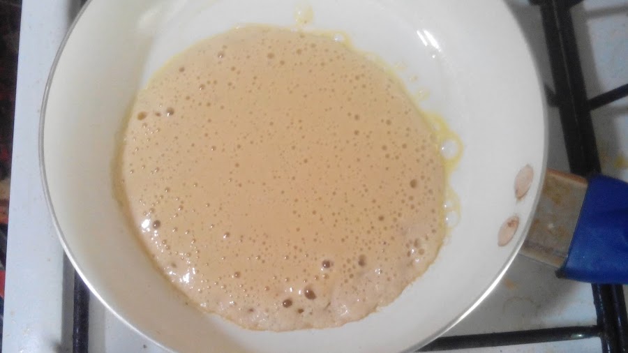 Vertimos directamente en porciones pequeñas en nuestra sartén caliente pero a fuego bajo.